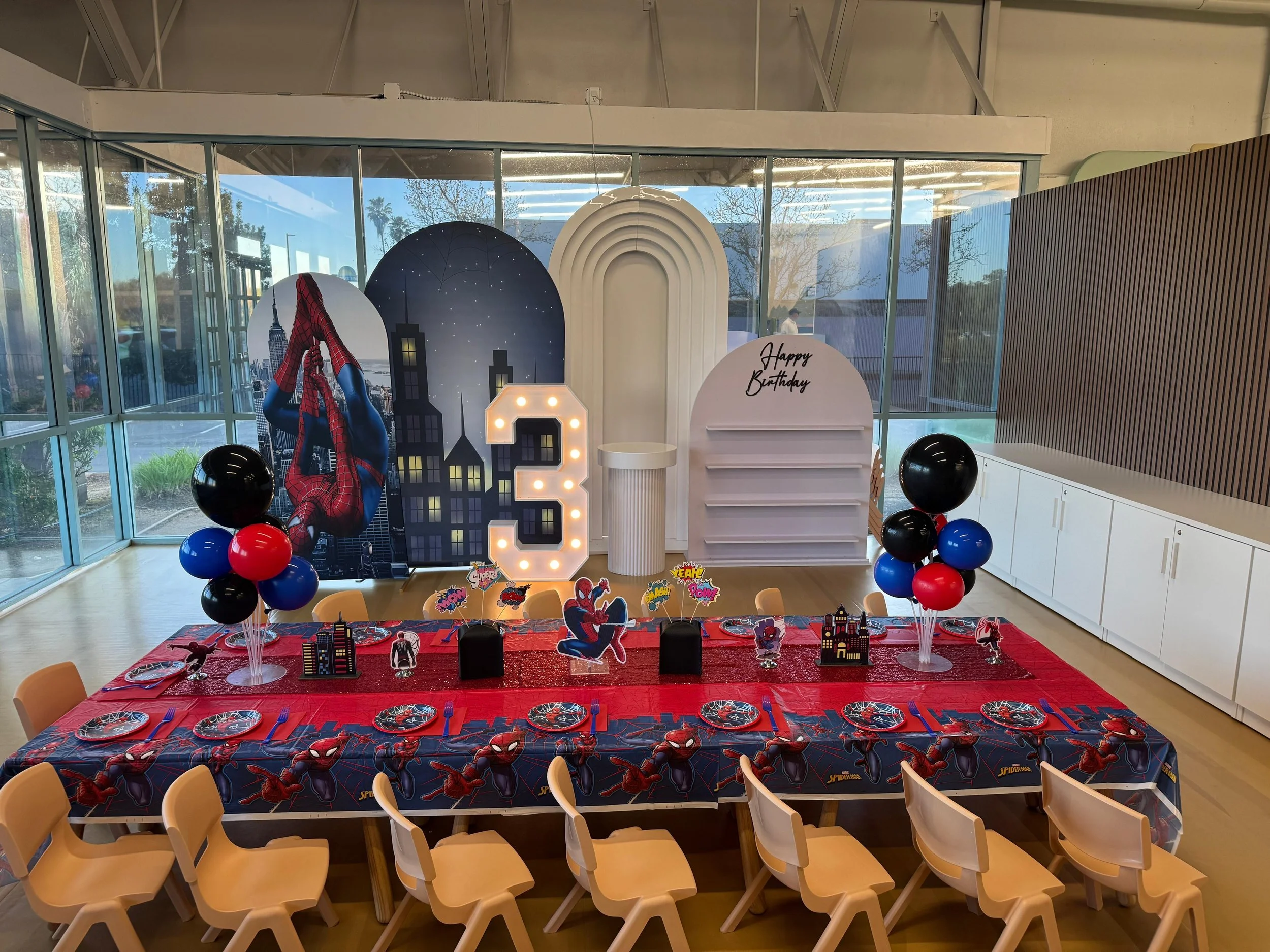 The themed party images shown on our website are representative examples to help inspire your celebration. Actual setup may vary slightly by location based on space, layout, and available décor.